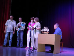 И действительно творческий вечер поэта и торжественно- поздравительная часть прошли в этот день на удивление довольно гладко. В начале руководителем студии «БРИГАНТИНА» Дмитрием Выркиным, в 17:00 вечера было сказано много хороших слов в адрес Юрия Верховского, рассказана его история становления как поэта. Известно, например то, что Юрий это довольно интересный и весьма неожиданный в своих литературных решениях человек.